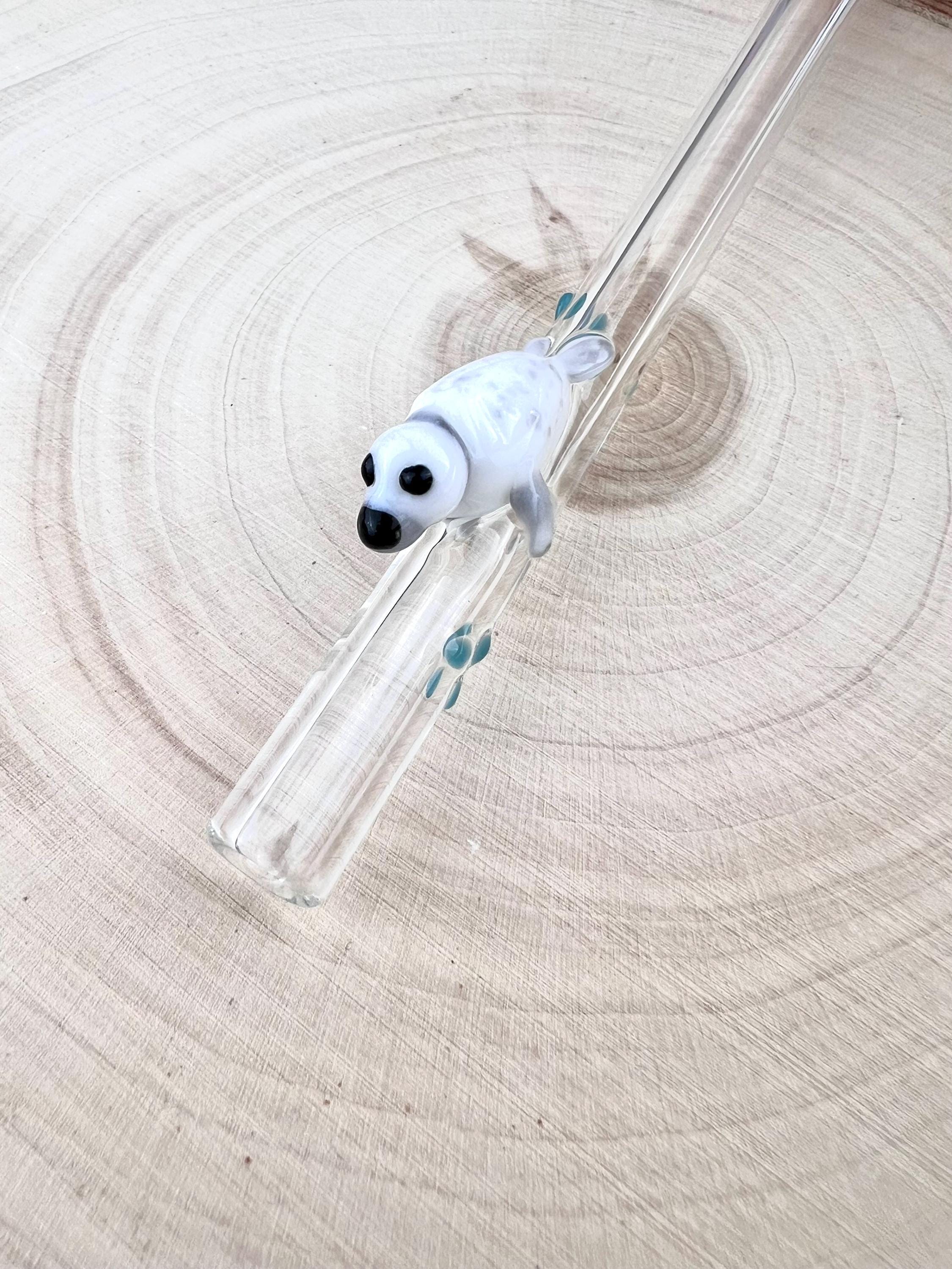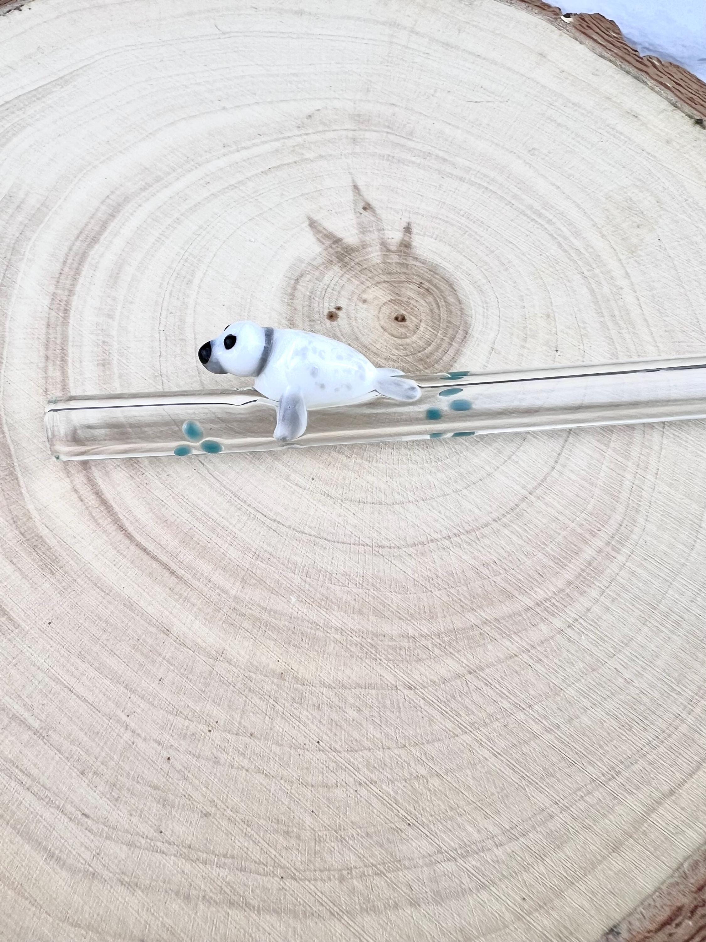 Baby Seal Glass Straw: Handmade Reusable Drinking Straw