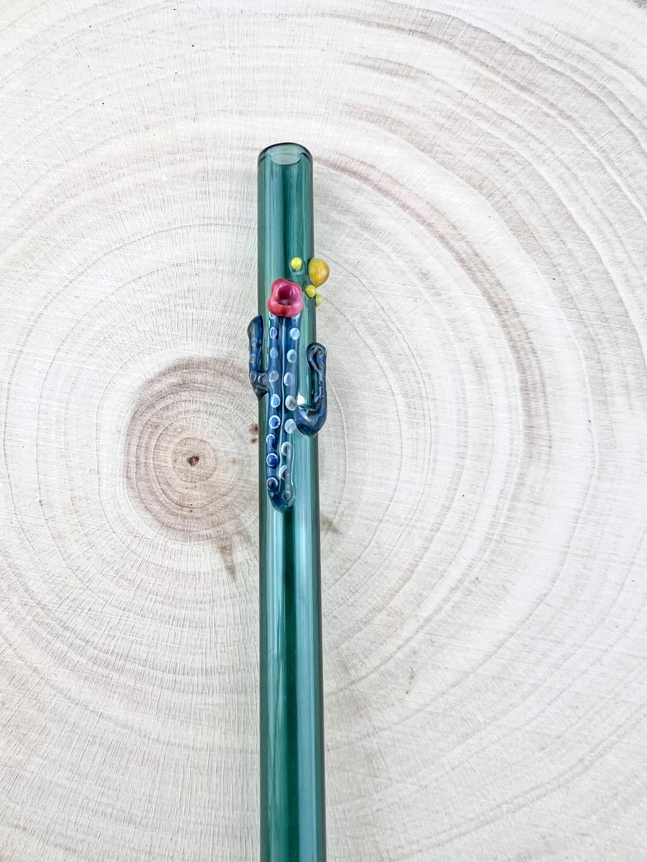 Saguaro Cactus on Colored Glass Straw: Handmade Reusable Drinking Straw