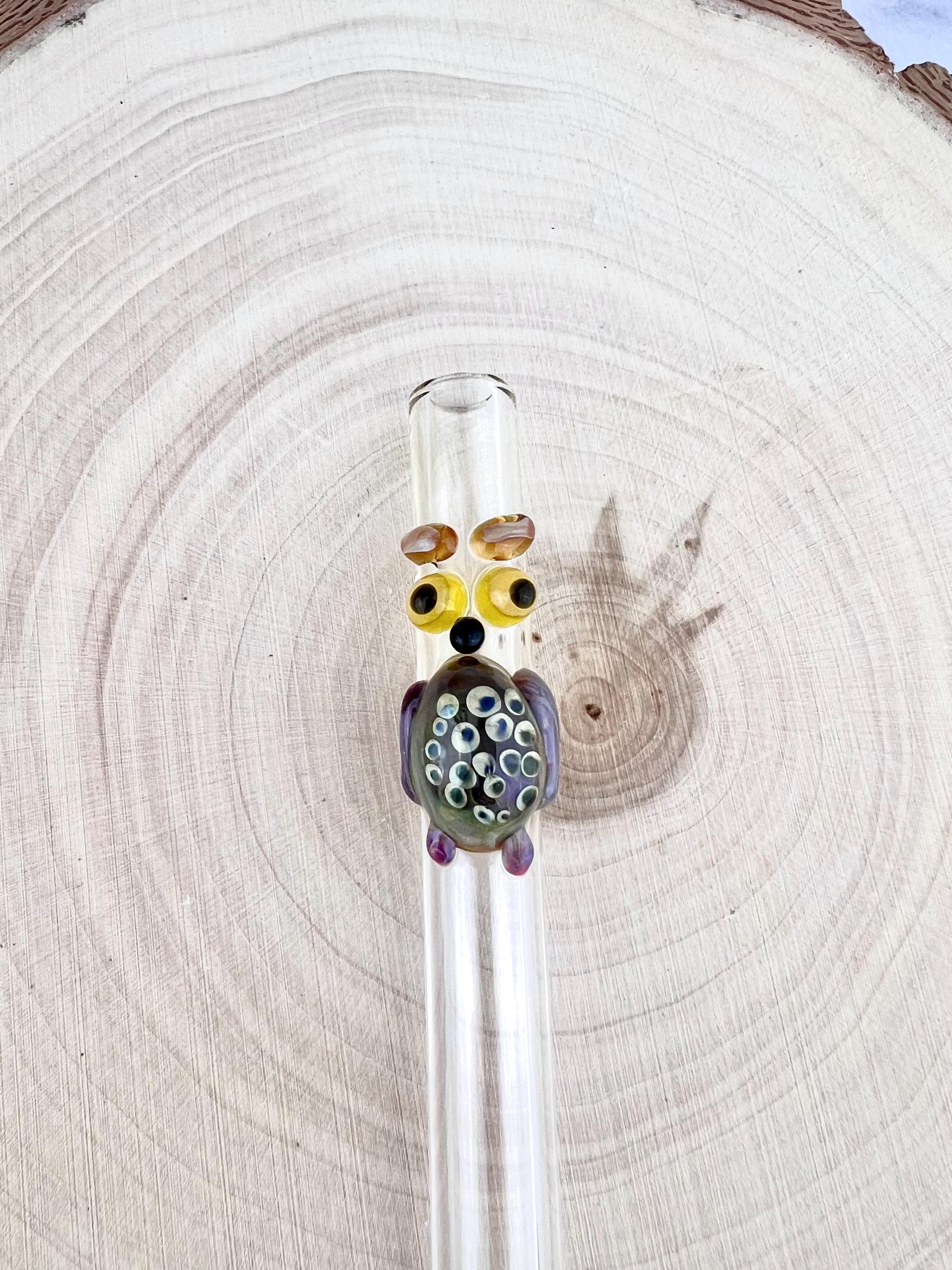 Handmade Owl Glass Straw: Reusable Eco-Friendly Boba/Smoothie Straw