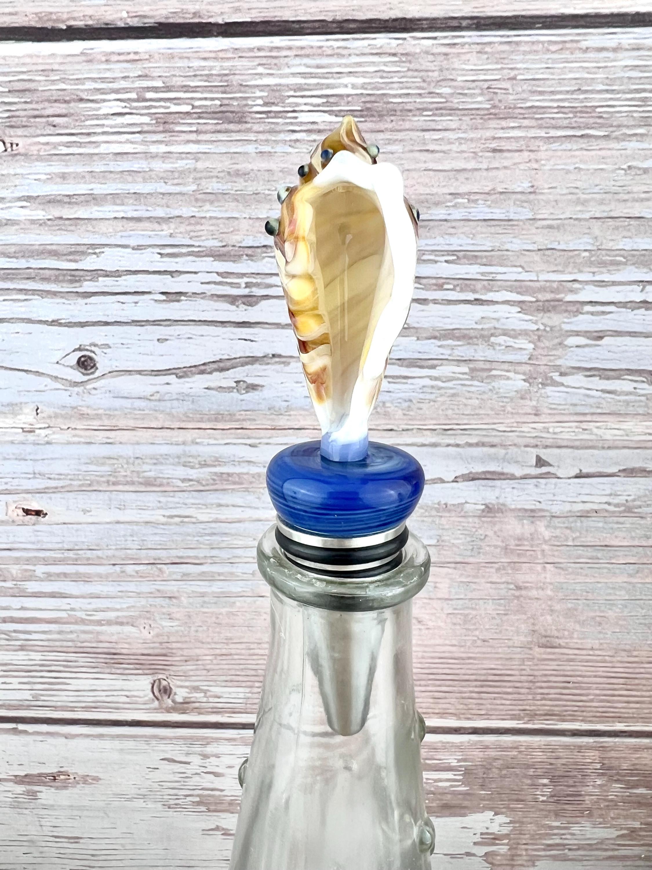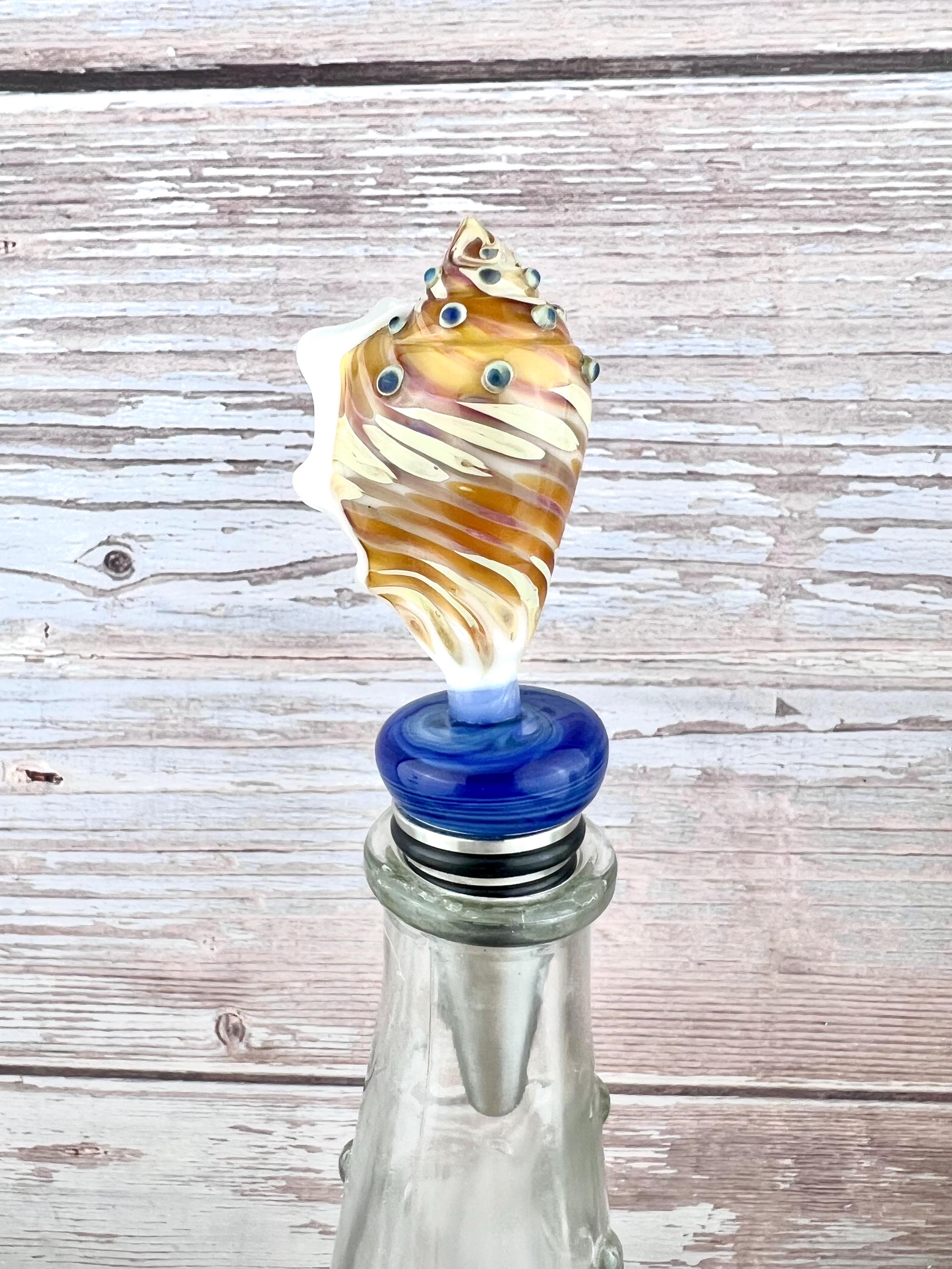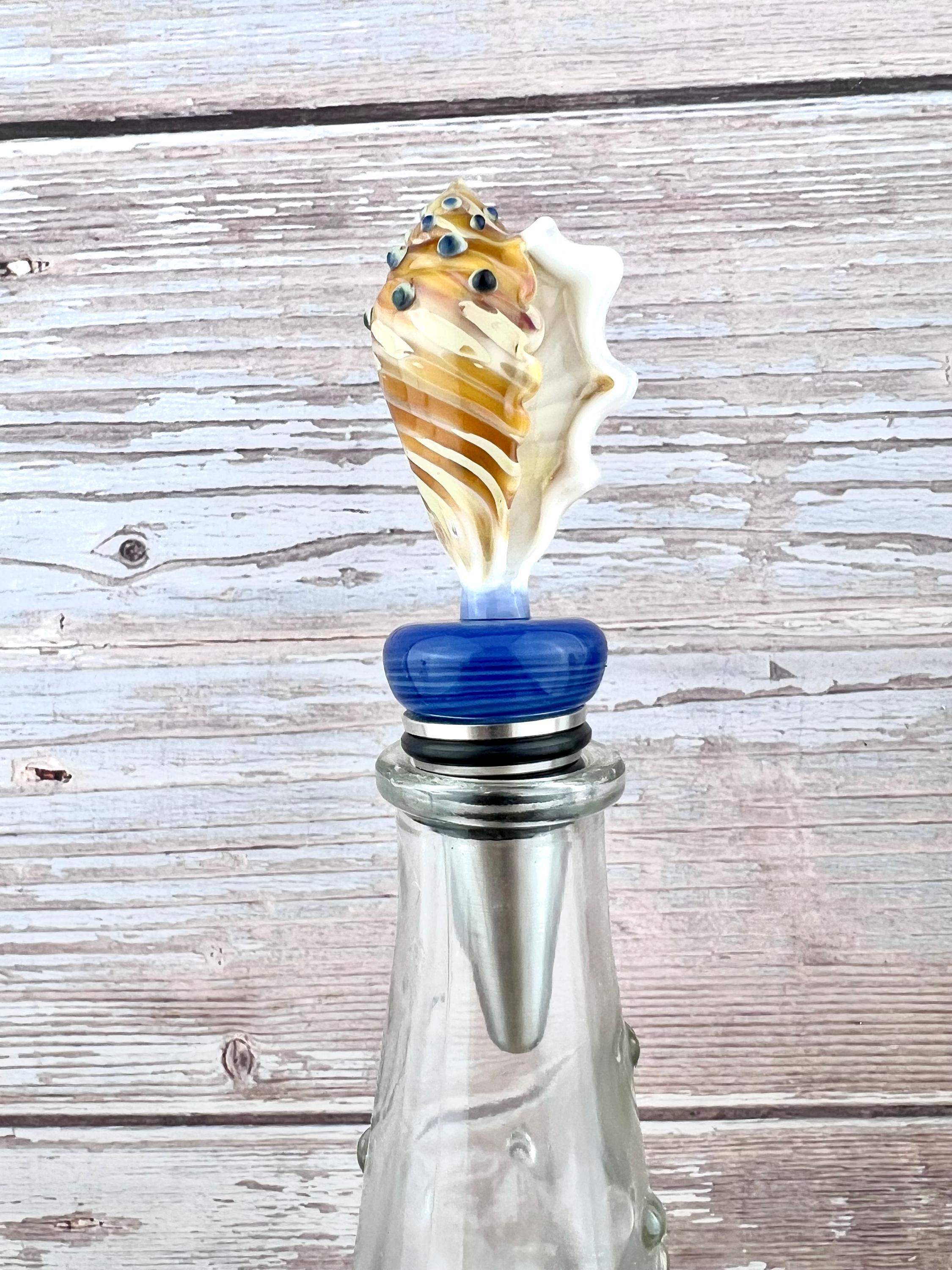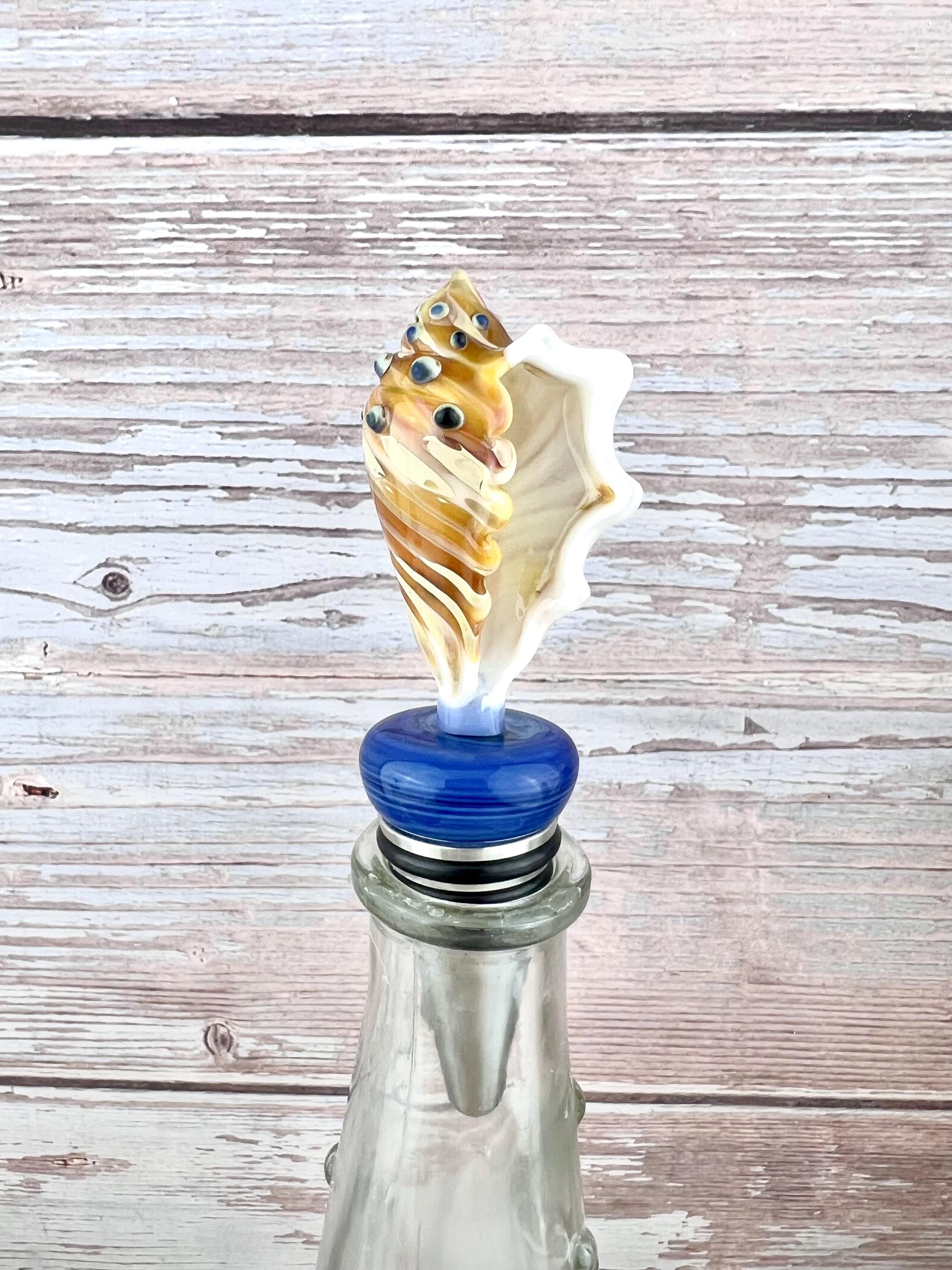 Handmade Glass Seashell Bottle Stopper: Metal Base, For Wine or Beer